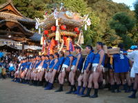 豊作の喜びを神に感謝する実りの秋にふさわしい祭りです。見どころは重さ数トンもの豪華絢爛な大屋台。まわしにはっぴ姿の粋な男衆が高々と担いで練り歩き、祭りは最高潮に。赤穂きっての賑やかで迫力ある祭りです。