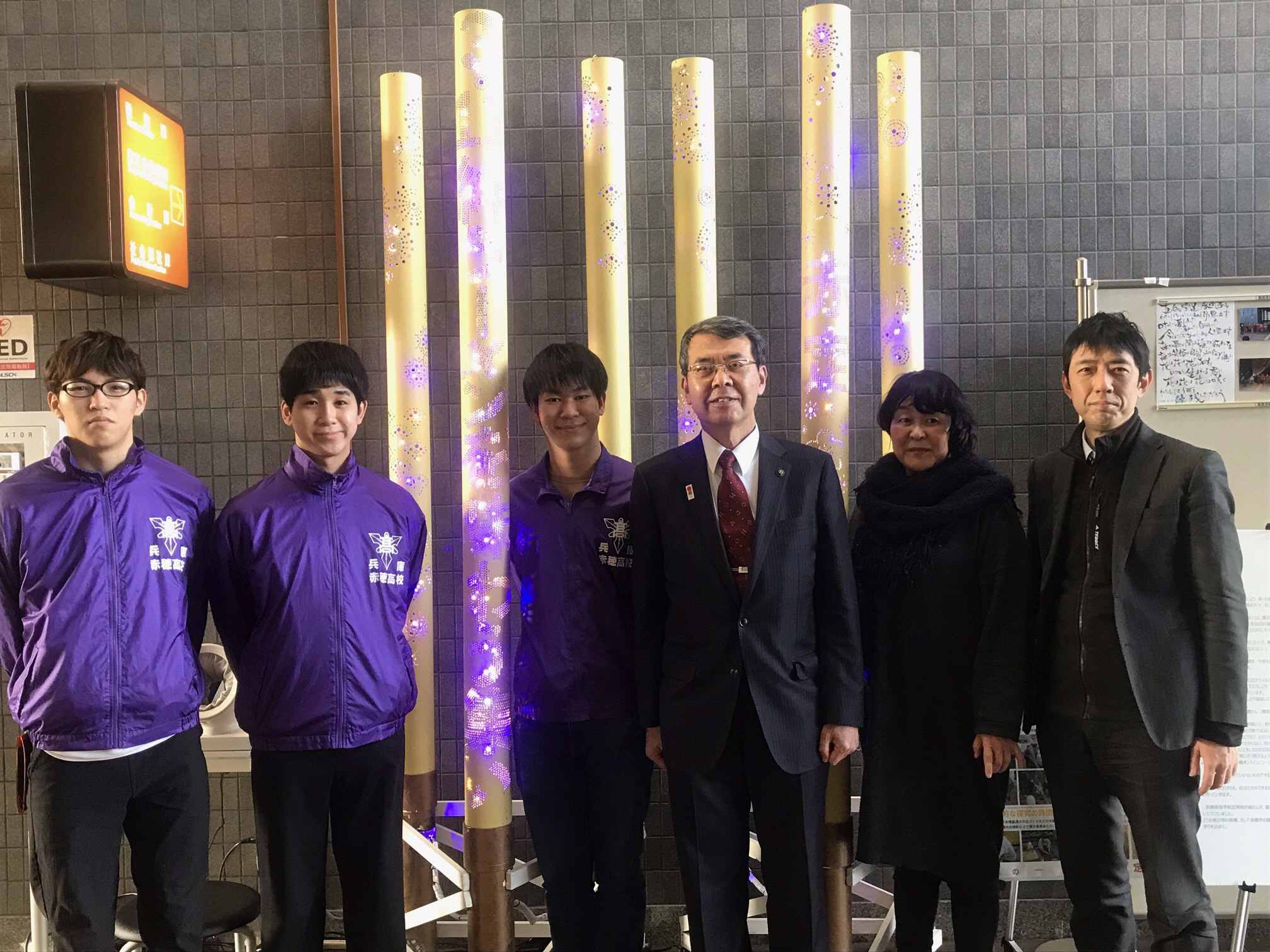 また、赤穂高校定時制の皆さんによる追悼の竹灯りも展示されています。短い期間ですが、市民の皆様にもご覧いただき、気仙沼と赤穂の絆を感じていただければと思います。被災地のことを忘れることなく、被災された方々へ心を寄せ、自分たちのできることで応援をつづけていくことの大切さを改めて感じています。