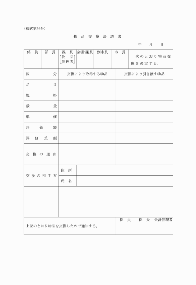 第6条 部長は、この規則に定めるもののほか、予算と関係を有する条例、規則、その他の規程の制定又は改廃及び市長が別に定める事項について、財政担当課長に協議しなければならない。