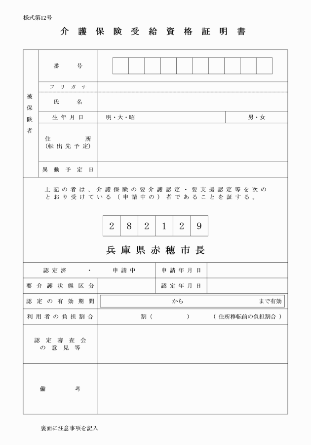 第18条 法第36条の規定による証明は、介護保険受給資格証明書(様式第12号)により行うものとする。