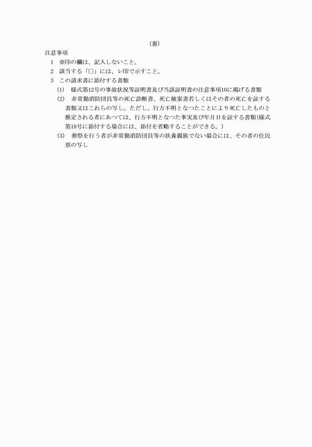 (2) 死亡した非常勤消防団員等に扶養親族のある場合には、第11条第2号に定める書類