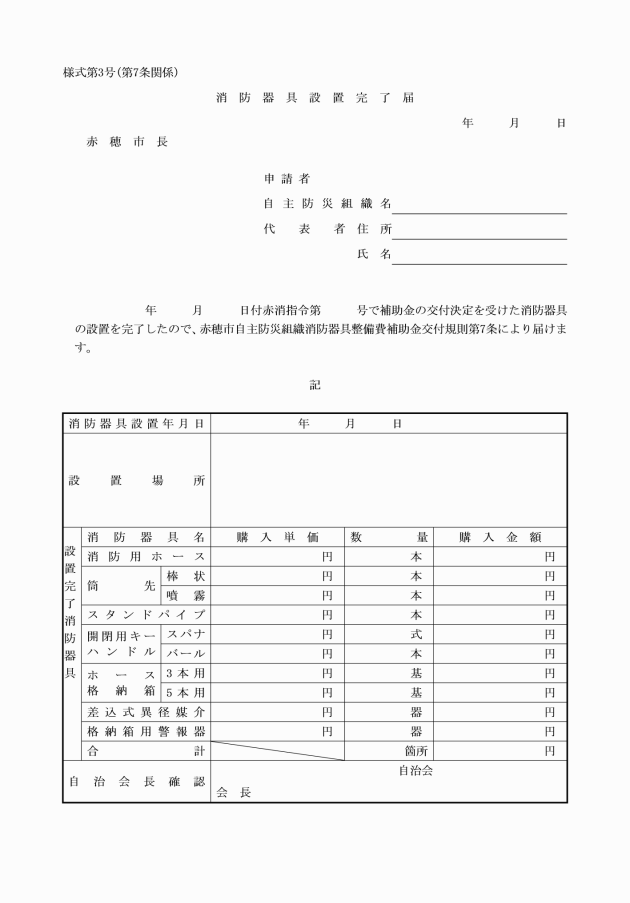 ○赤穂市自主防災組織消防器具整備費補助金交付規則