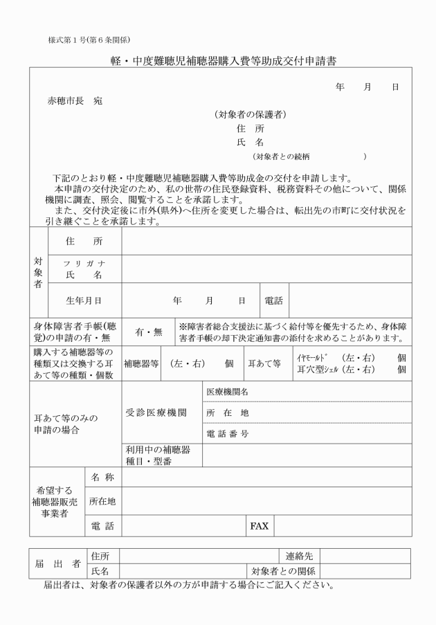 ○赤穂市軽・中度難聴児補聴器購入費等助成事業実施要綱