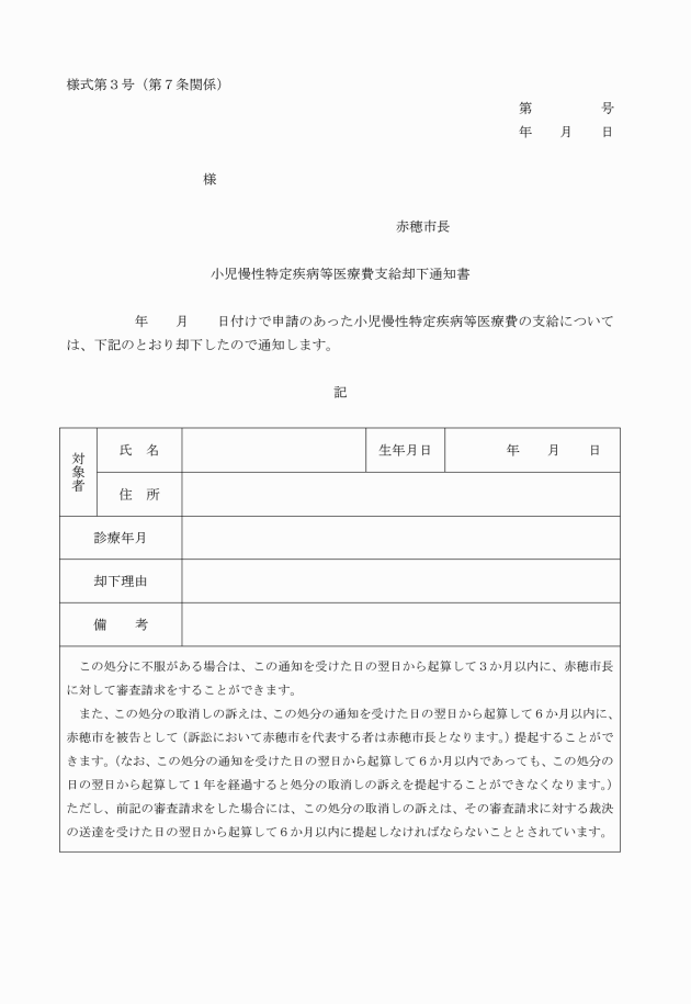 ○赤穂市小児慢性特定疾病等医療費助成要綱
