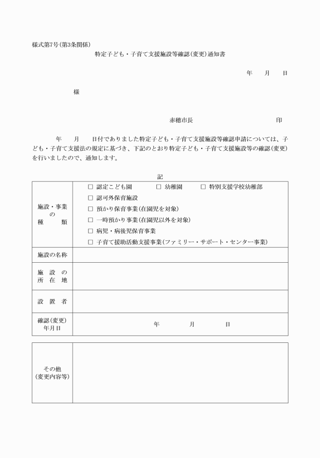 ○赤穂市特定子ども・子育て支援施設等の確認に関する規則