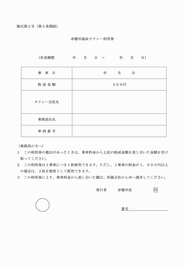 ○赤穂市障がい者福祉タクシー利用助成事業実施要綱