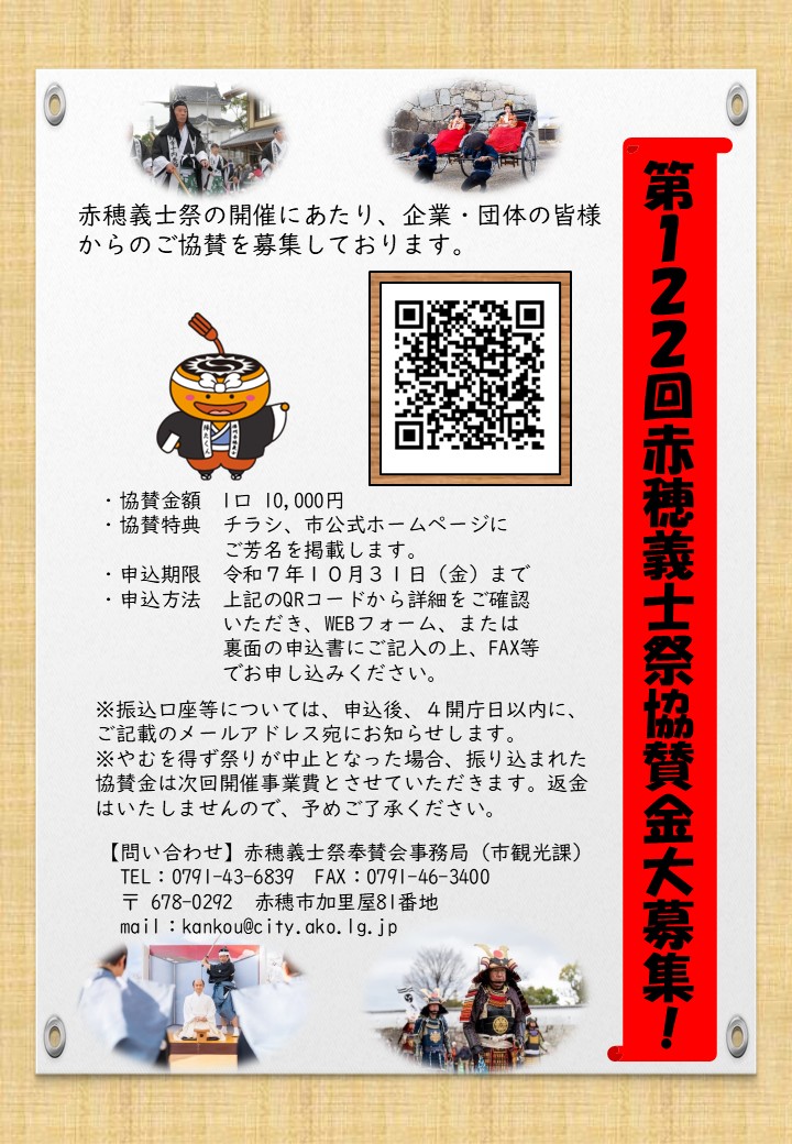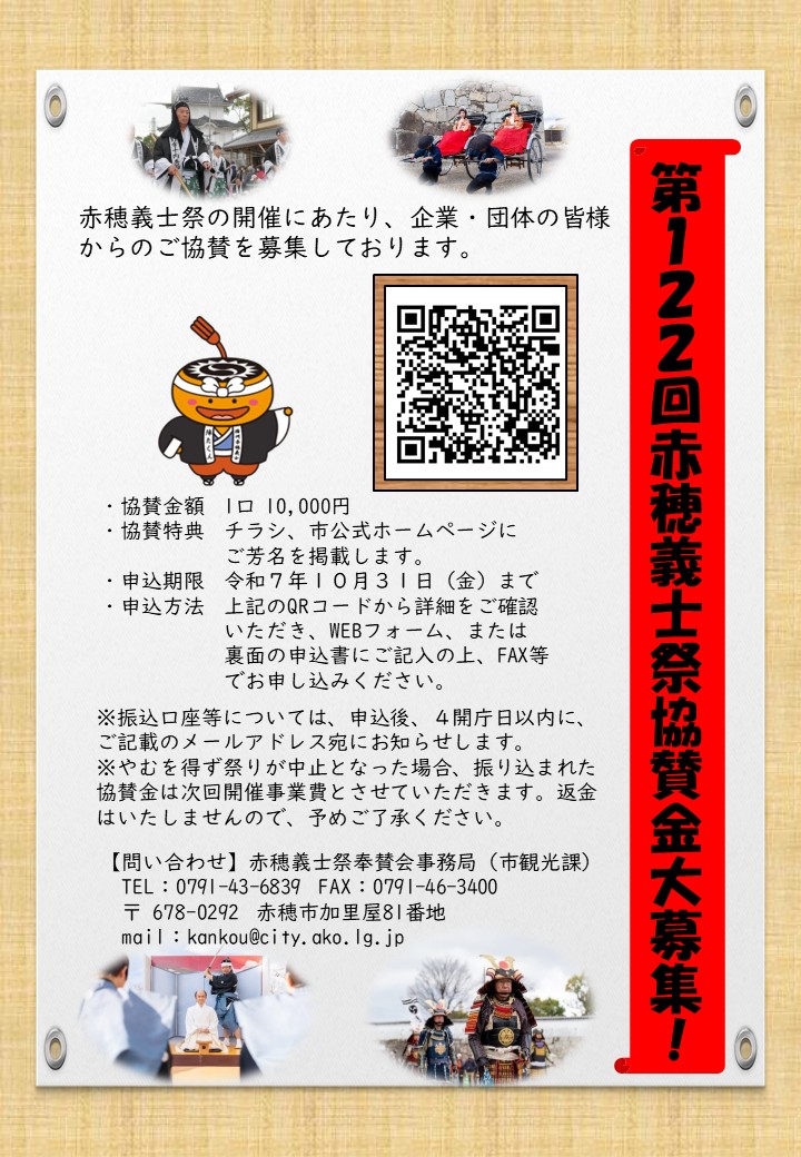 第122回赤穂義士祭協賛金応募フォーム(外部サイトへリンク)