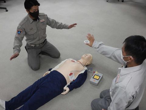 電気ショックが完了すると、「ただちに胸骨圧迫(心臓マッサージ)を開始してください」などの音声メッセージが流れますので、これに従って、ただちに胸骨圧迫を再開します。