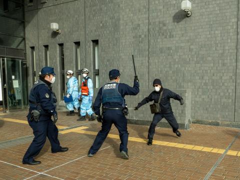 国際テロ組織などの脅威が高まり、いつどこで何が起きてもおかしくない世情となっているため、赤穂市役所において各関係機関における災害対応能力の向上、連携強化を図り、赤穂市民の安全・安心を確保することを目的に訓練を実施しました。
