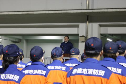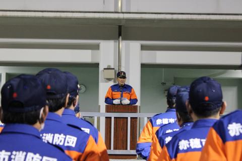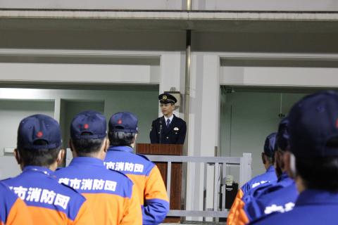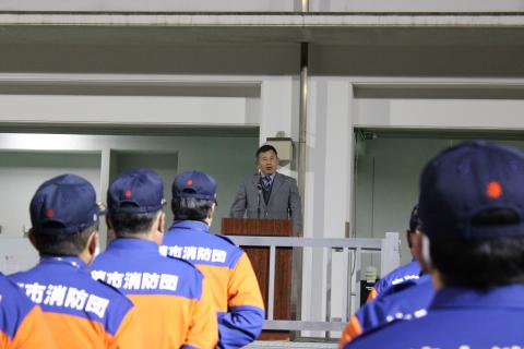 毎年、12月28日から31日にかけて、市民のみなさまが安全に生活できるように、防犯および火災予防を目的に、地域の消防団員が管轄地区を巡回するものです。年末特別警戒を開始するにあたり、下記のとおり発隊式を実施しました。